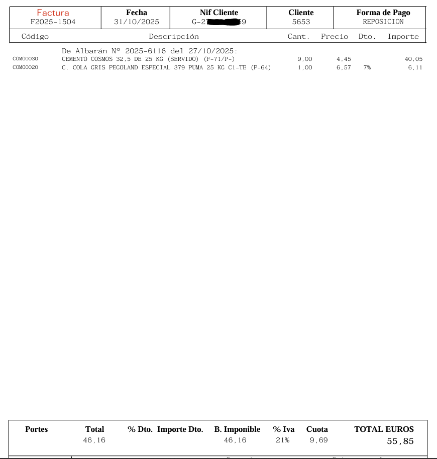 - El cemento necesario para el arreglo para poder añadir un canil en el refugio y poder salvar a más peludos han sido 55'85€.